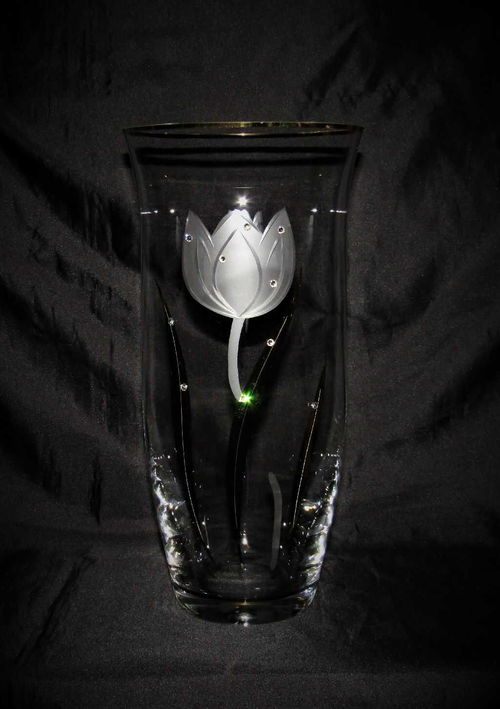 Křišťálová váza ručně broušená s krystaly Swarovski.